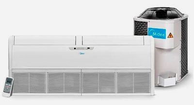 Ar-condicionado split: é composto de duas partes: a evaporadora, que lança o ar gelado para o cômodo, e a condensadora, instalada no ambiente externo e que faz o resfriamento do ar (também responsável pelo barulho). Principais vantagens: além do baixo nível de ruído, o split apresenta os modelos mais modernos, sofisticados e bonitos da categoria. Com capacidades que podem chegar até 80 mil BTU, esse equipamento também se destaca por não exigir um trabalho de instalação muito grande, sendo necessário um buraco apenas para a passagem das tubulações. Principais desvantagens: é o ar-condicionado mais caro e sua instalação deve ser realizada por profissionais especializados, o que encarece o processo de manutenção do dispositivo. É indicado para ambientes grandes e que permitem reformas estruturais no cômodo para a passagem da tubulação, mas também funciona muito bem em ambientes pequenos e pode oferecer certa economia em relação ao ar-condicionado de janela. Apresenta baixíssimo nível de ruído.